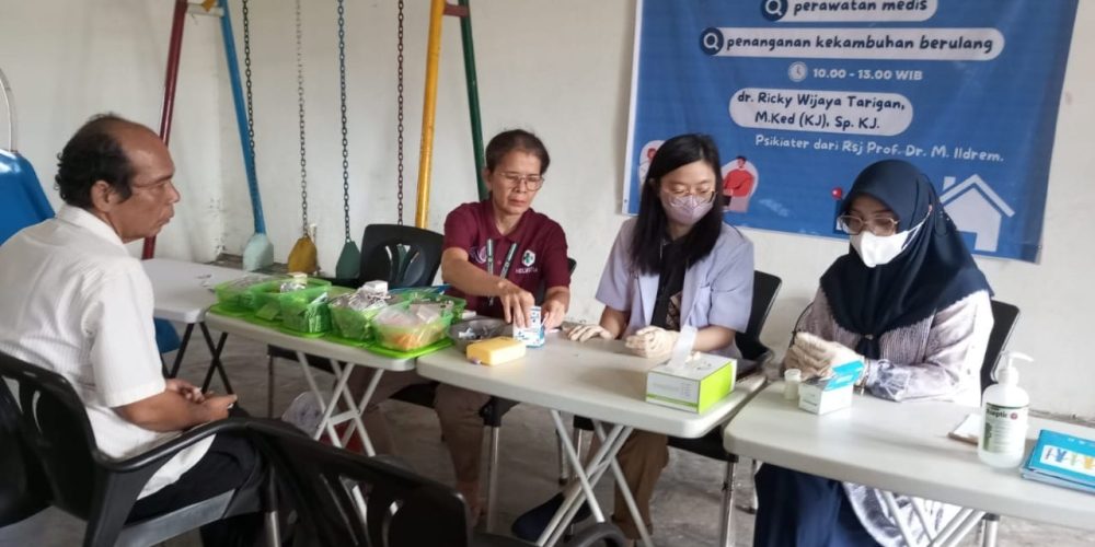 Kegiatan ini dilakukan di Rumah Belajar Sehat Jiwa Kelurahan Helvetia Tengah. Dalam pelaksanaan kegiatan Posbindu ada kader keswa yang berperan aktif memberikan pelayanan kesehatan di meja 1,2,4 dan 5 kepada sahabat sehat jiwa, keluarga sahabat sehat jiwa dan masyarakat yang diarahkan oleh puskesmas Helvetia.
